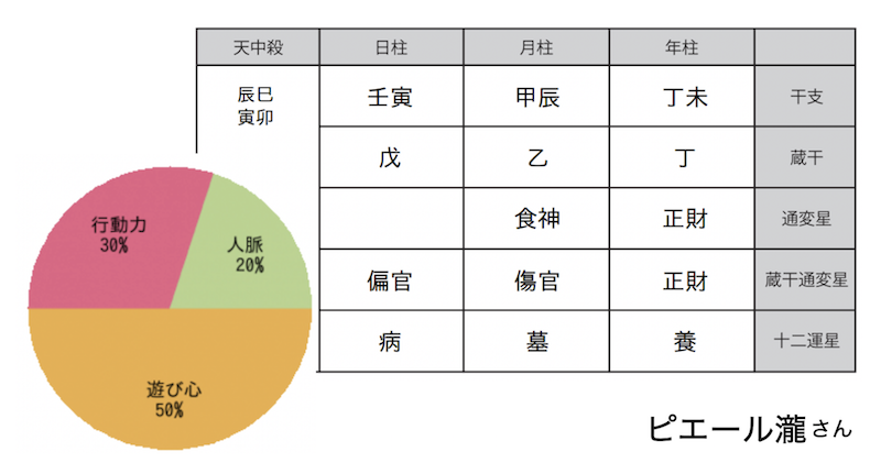 こちらがピエール瀧さんの命式の通変五行バランスです。