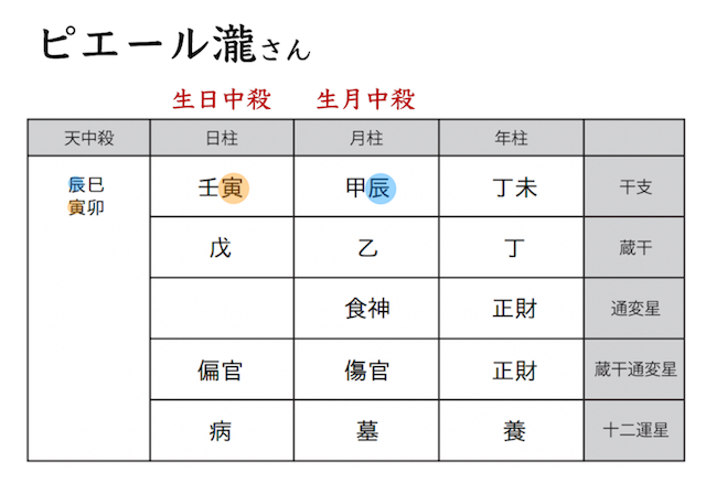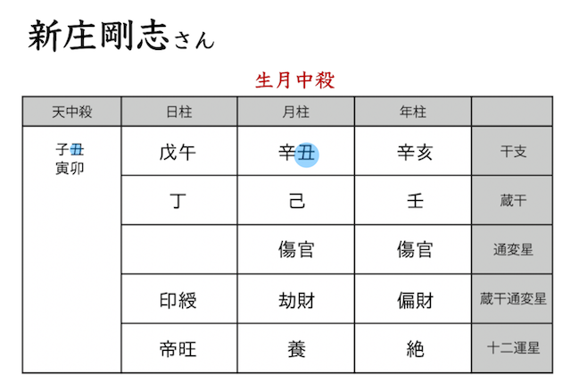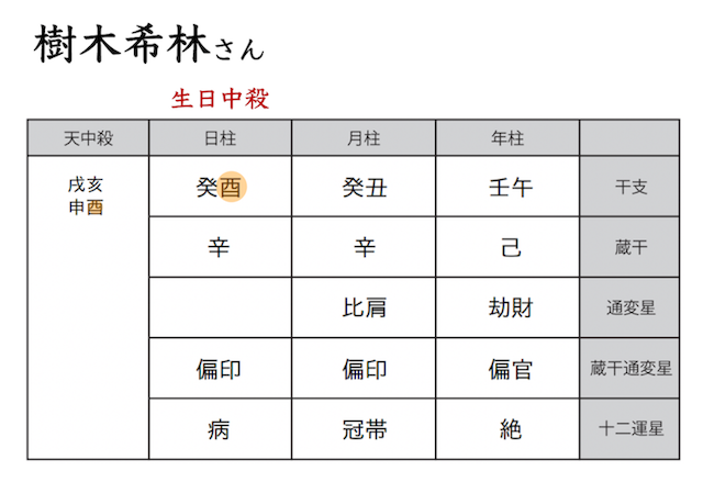 わかりづらいと思うので、著名人の命式を取り上げて具体的に説明していきます