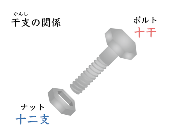 十干十二支の関係は、ボルトとナットの関係にたとえられます。