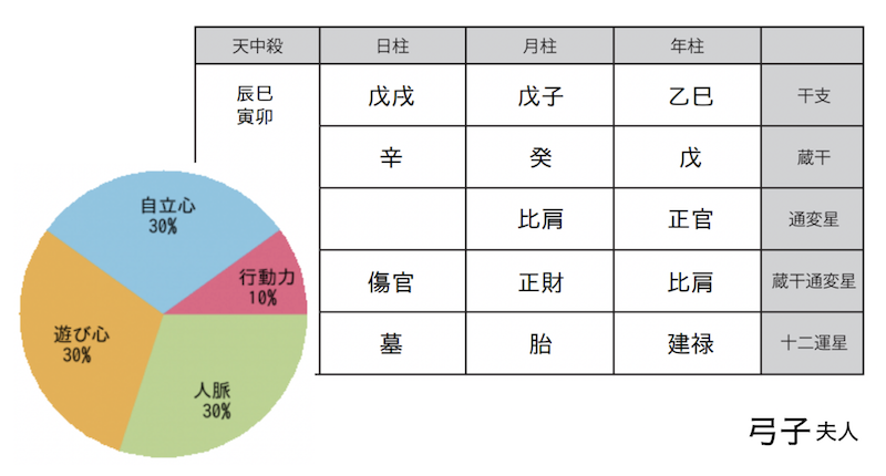 弓子夫人について命式の五行バランスから、このように捉えることができます。