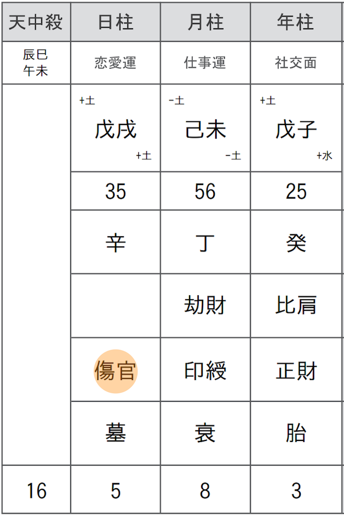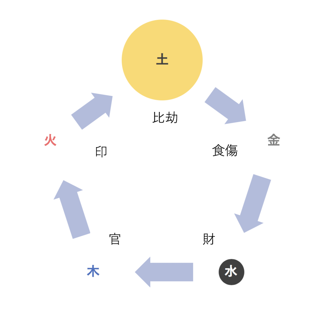 上野さんの命式は「土」の五行が突出している自星(比劫)突出タイプです。