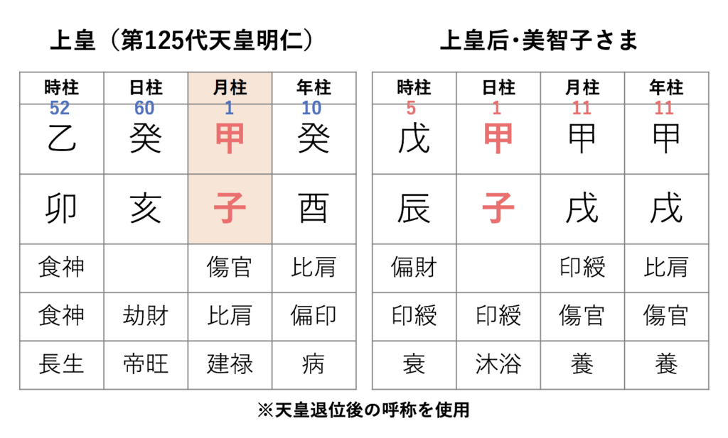 ご覧のように、陛下の月柱の干支は【甲子(きのえね)】