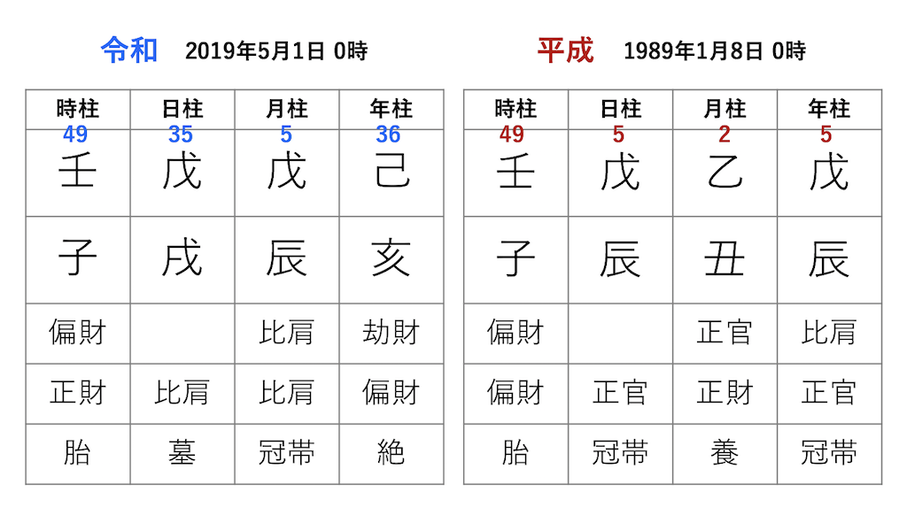 新元号、旧元号の命式から読み取れること