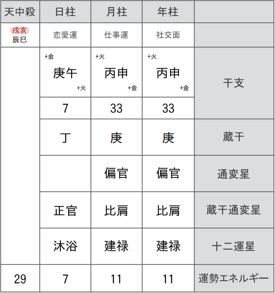十干同士の組み合わせによって同じ通変星でもまったく働きが違うため、これが解釈にも影響します。