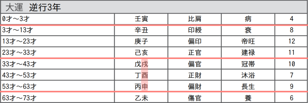 33歳前後で10年周期の運(大運)と、30年周期の運(接木運)の両方が変わります。