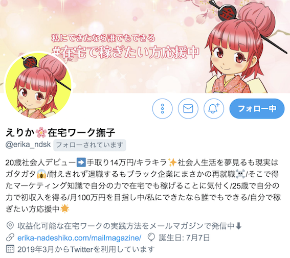 えりかさんは、メルマガ(無料)でTwitterを活用した在宅ワークの実践法を発信されています。