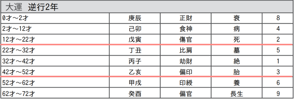 現在の大運は【偏印 / 胎】の組み合わせ。