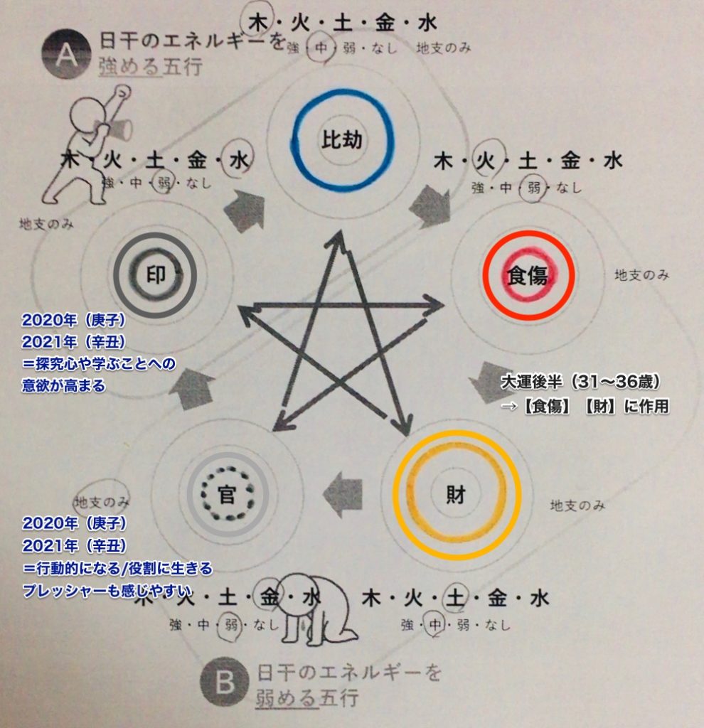 - 翔一さんの五行の「官」が強くなる。自分の役割に生き、やるべきことに使命感を持って邁進する2年間
