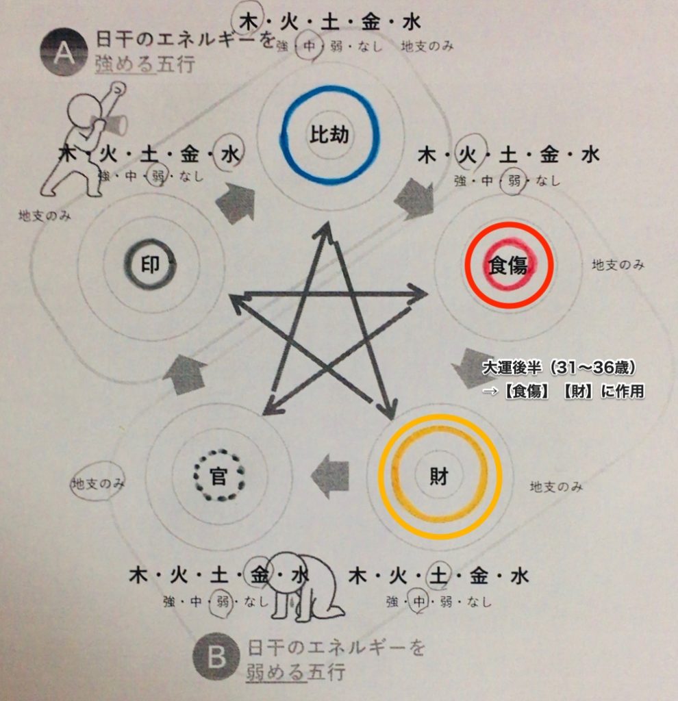 五行バランスで見ると26歳〜46歳までは「財星」が強く巡っている時期。