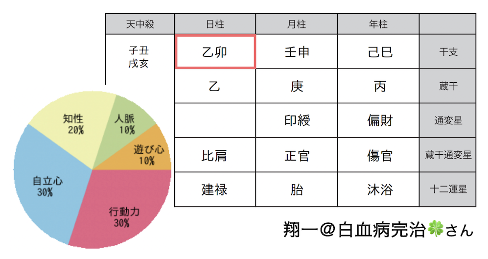 こちらが翔一さんの命式と通変星のパラメーターです。