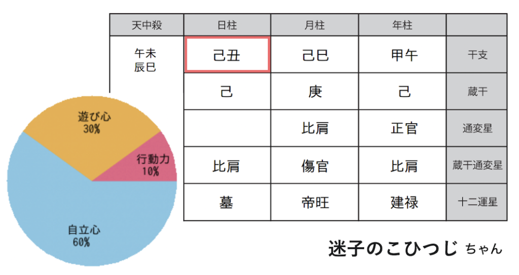 こちらが迷子のこひつじちゃんの命式と通変星のパラメーターです。