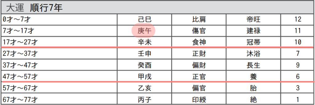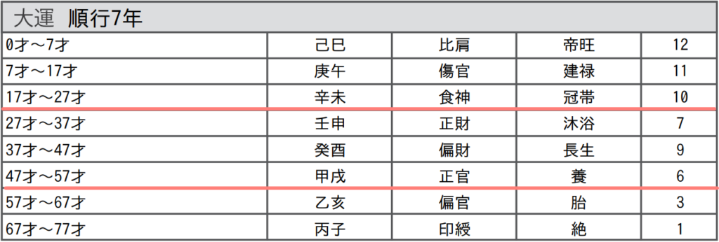 くわえて、0歳〜27歳は【帝旺 / 建禄 / 冠帯】という身強(みきょう)の星が巡る、最強の運勢です。