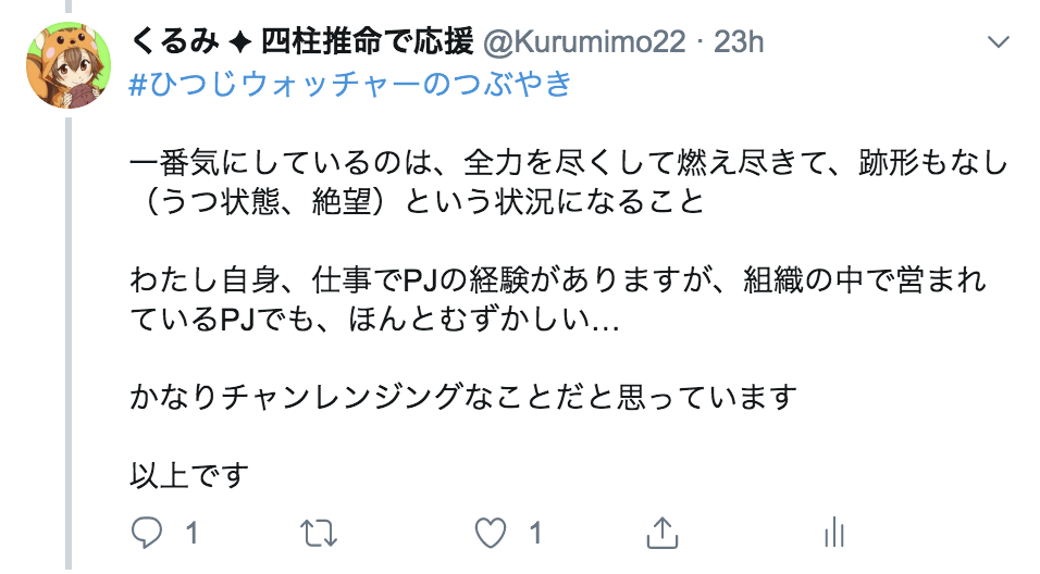 こちらのツイートを、#ひつじウォッチャーのつぶやきとしてツイートしました。
