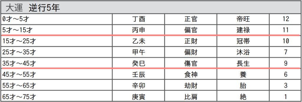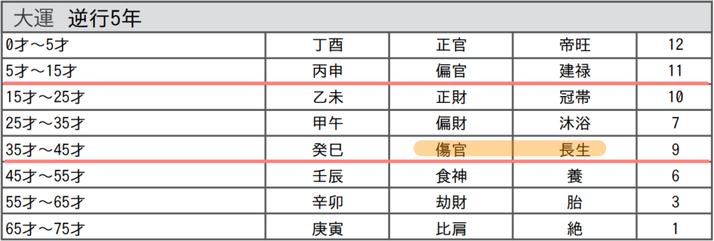 35歳からは、【沐浴】から【長生(ちょうせい)】に切り替わります。