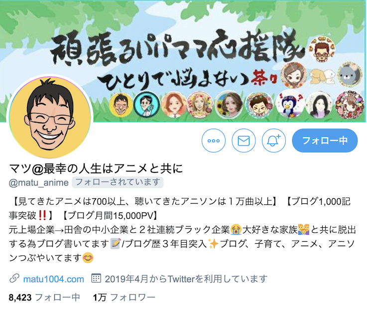 #おはよう戦隊 、#頑張るパパママ応援隊 を通じて、大好きなアニメやブログはもちろん、一人のパパとして〝トータルなマツさん〟を発信中。