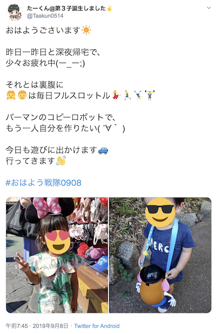 家族でディズニーランドを楽しんできた報告ツイートがこちら。