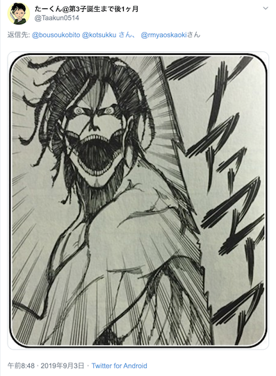 たーくんといえば、育児に奮闘中の進撃ヲタ。