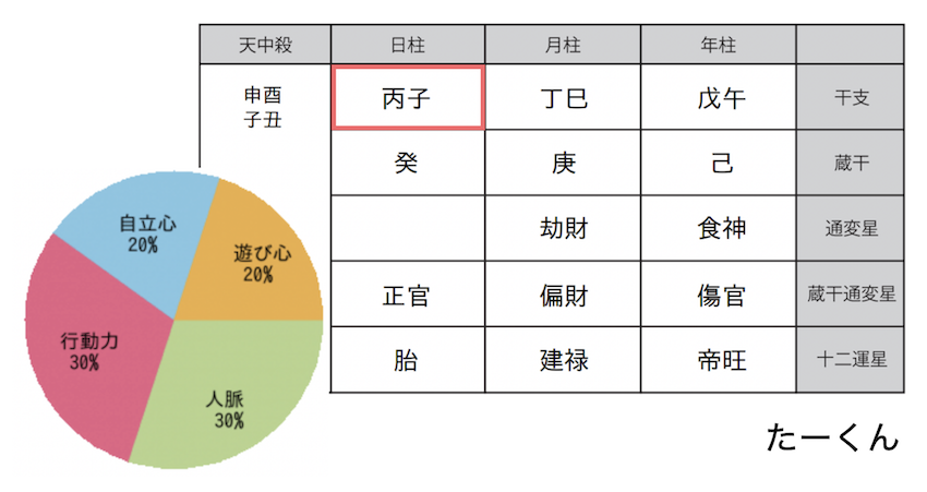 こちらがたーくんの命式と通変星のパラメーターです。