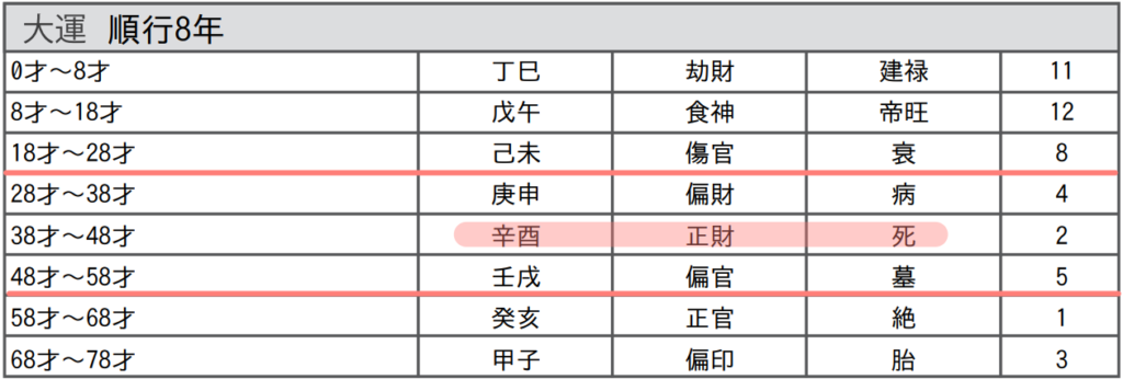 現在の大運は【正財 / 死】。