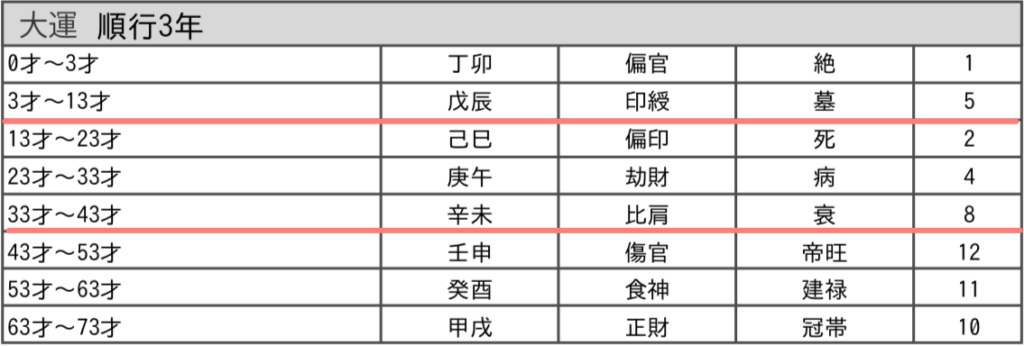社会運を示す大運(だいうん / たいうん)で見ていきます。