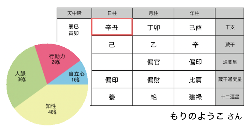 こちらがもりのようこさんの命式と通変星のパラメーターです。