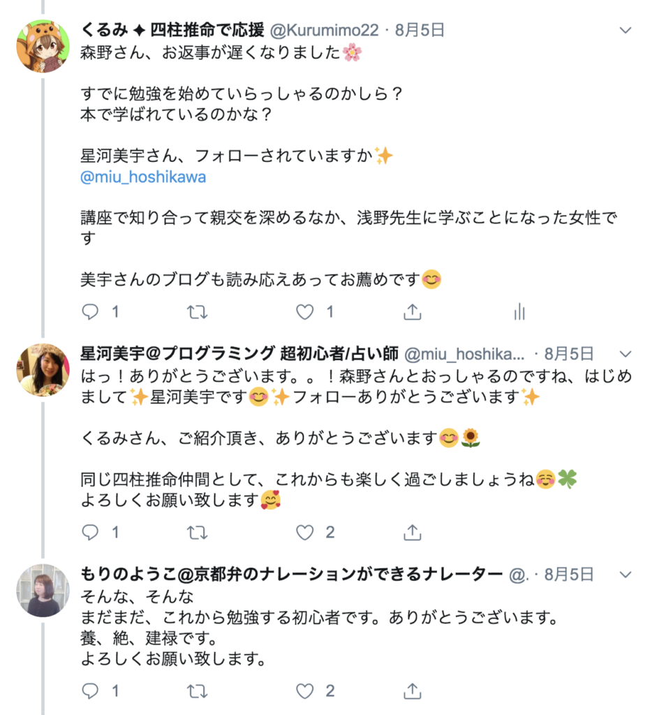 もよさんの「四柱推命を勉強したい」がきっかけの出会い。