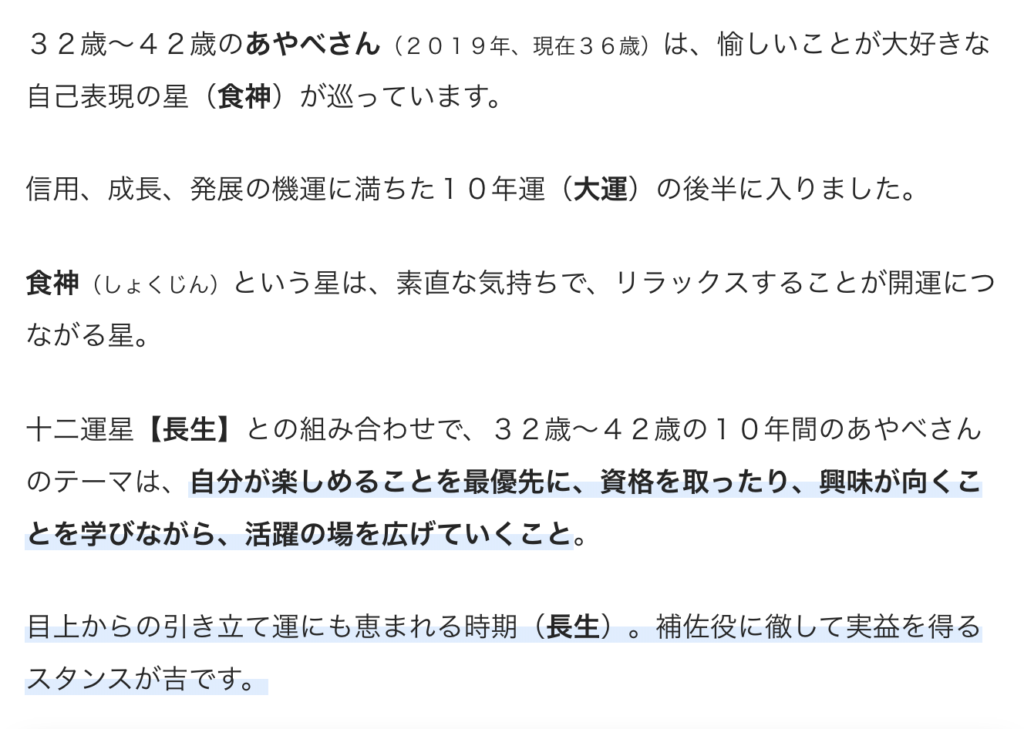 3つ目は、現在の10年運(大運)のテーマが、いまの気持ちにとてもフィットしています。