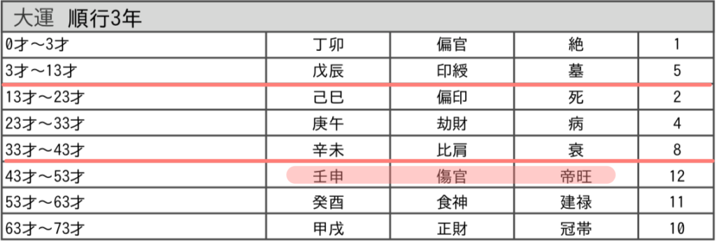 現在の大運【帝旺】が、あと3年で終わってしまうのですね!ありゃりゃ…