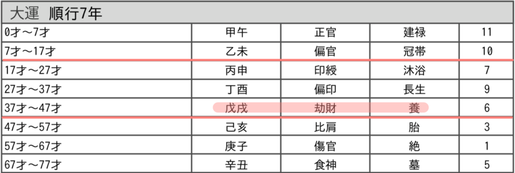 これが、37歳〜47歳のとっつさんの運勢のおおまかな傾向です。意識されるとよいでしょう。