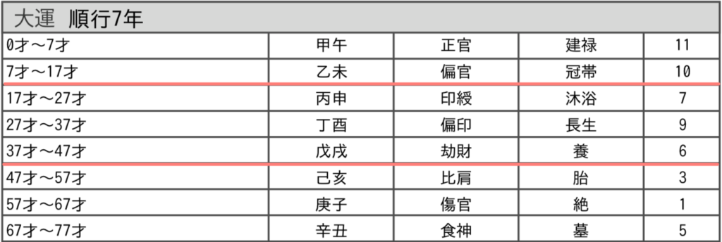 社会運を示す大運(だいうん / たいうん)で見ていきます。