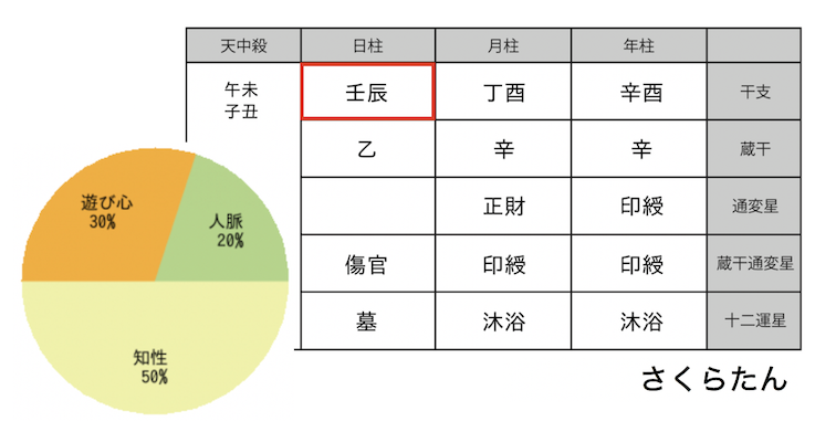 こちらがさくらたんの命式と通変星のパラメーターです。