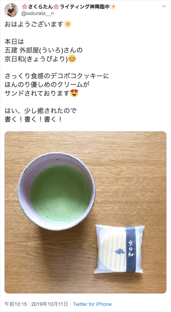 朝の挨拶ツイートに欠かせない〝お茶とお菓子〟などなど。