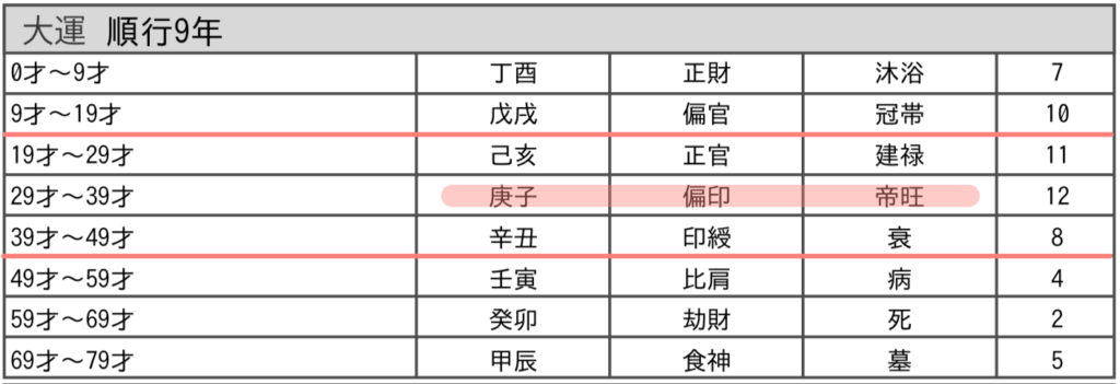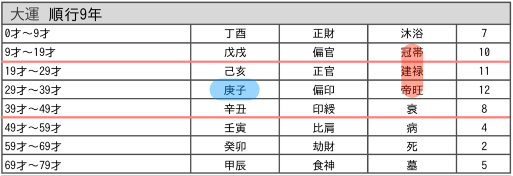 29歳〜39歳に【庚子】という干支が巡っていることがわかります。