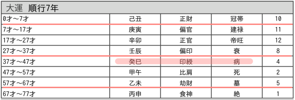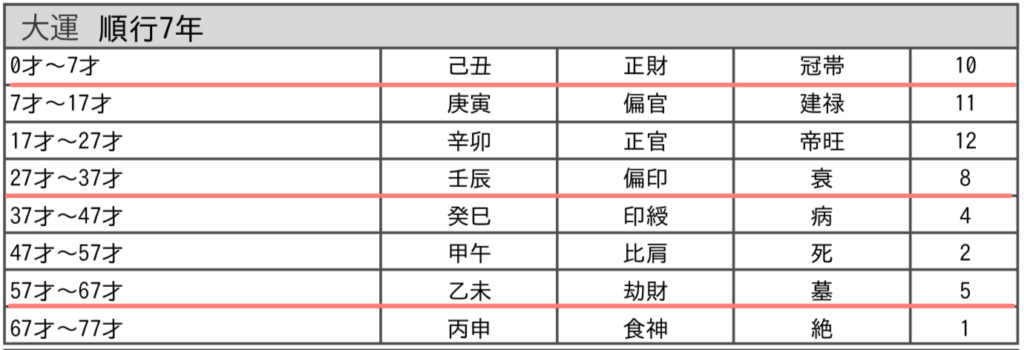 社会運を示す大運(だいうん / たいうん)で見ていきます。