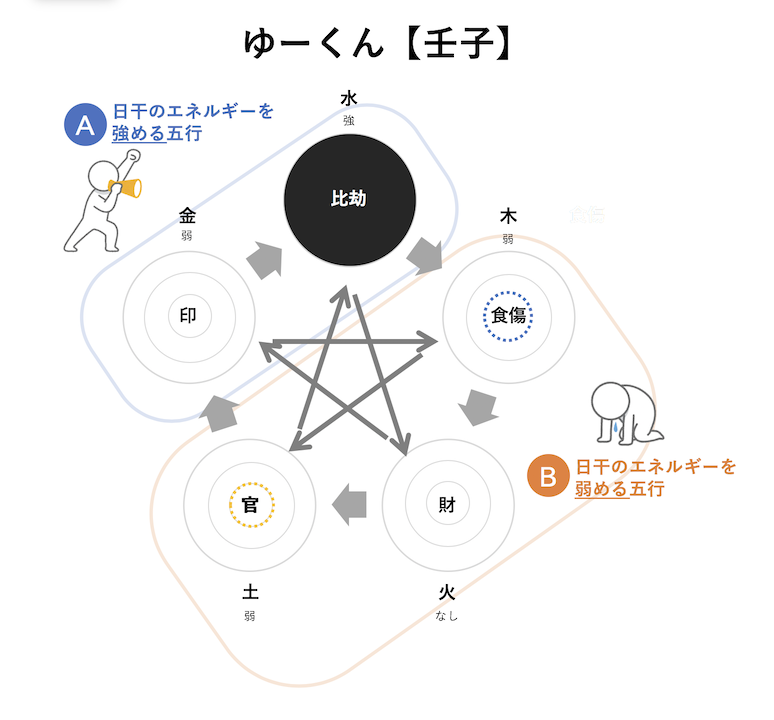 ゆーくん自身を表す日主(比劫)は【壬子(みずのえね)】で「水」の五行。
