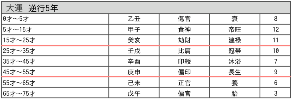 45歳〜55歳の大運に巡るのは【偏印 / 長生】。