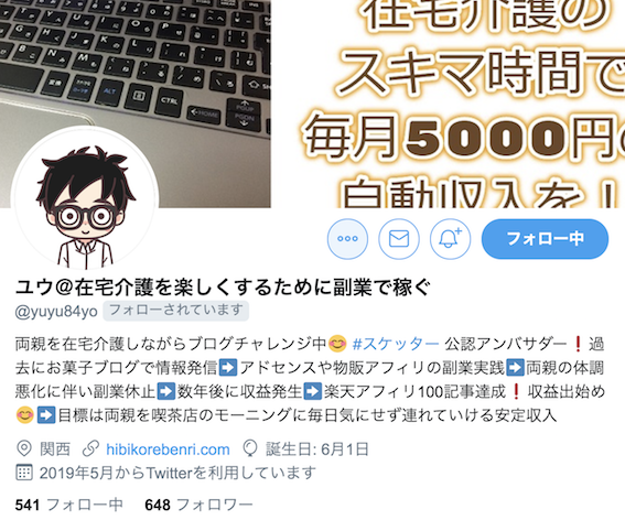 ユウさんは「在宅介護を楽しくするために副業で稼ぐ」というテーマでTwitterを始められました。