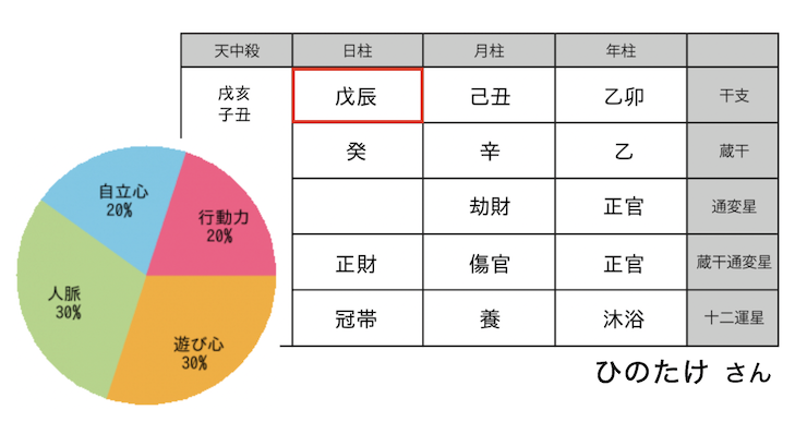 こちらがひのたけさんの命式と通変星のパラメーターです。
