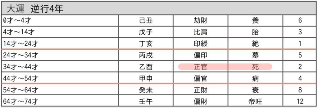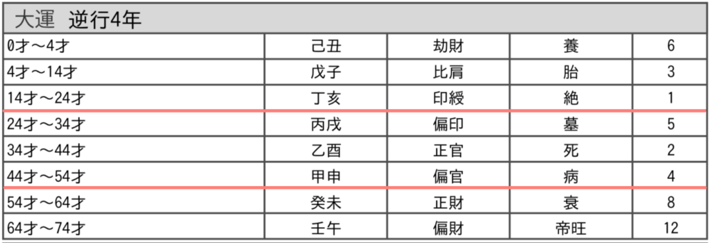 社会運を示す大運(だいうん / たいうん)で見ていきます。