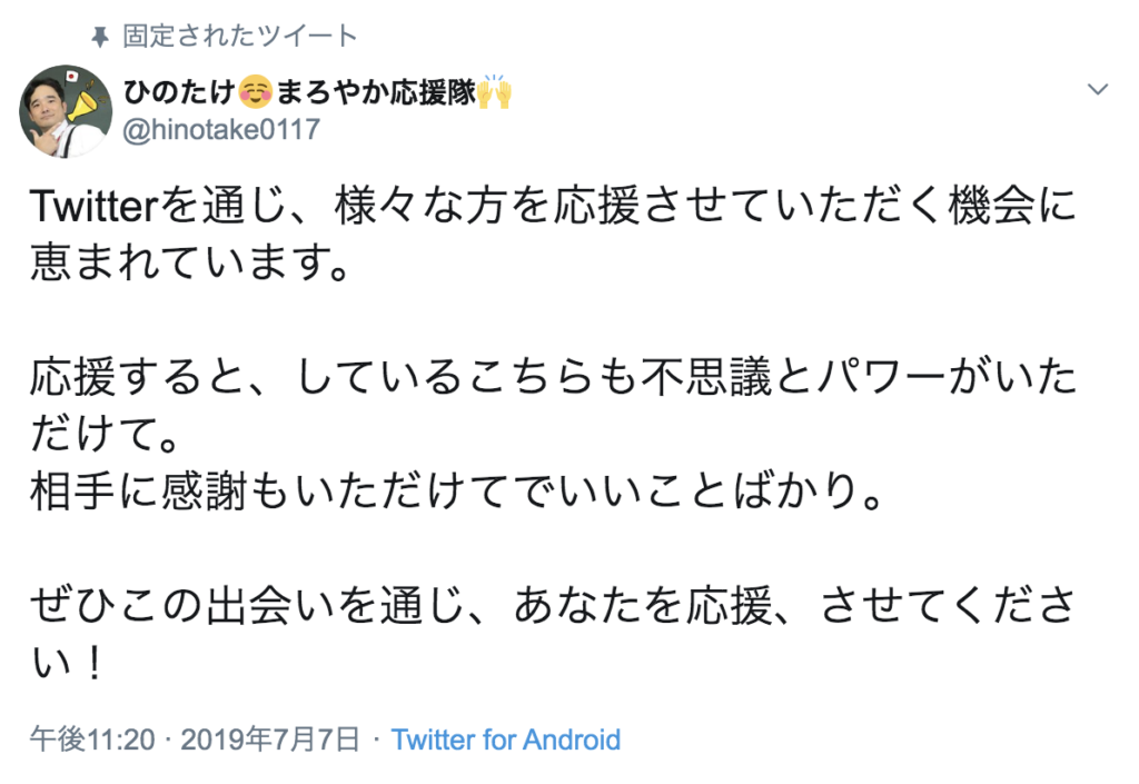 ひのたけさんは〝応援〟というテーマで、日々Twitterを楽しんでいます。