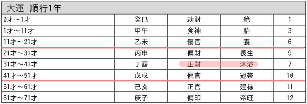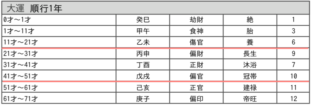社会運を示す大運(だいうん / たいうん)で見ていきます。