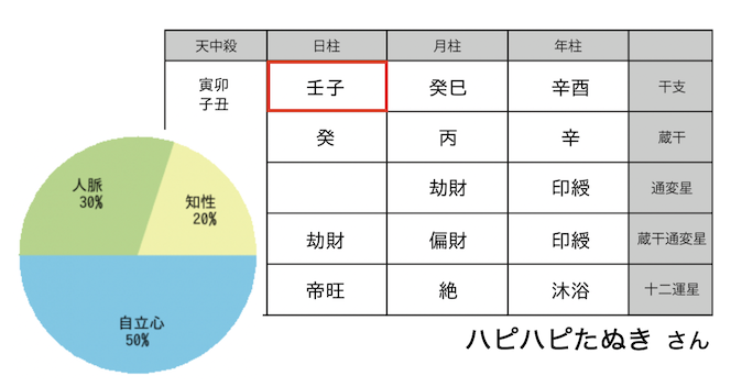 こちらがハピハピたぬきさんの命式と通変星のパラメーターです。