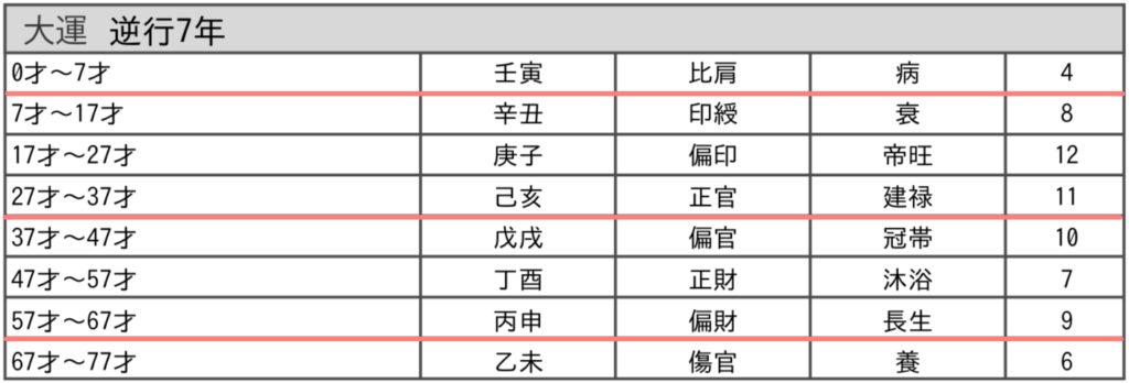 社会運を示す大運(だいうん / たいうん)で見ていきます。