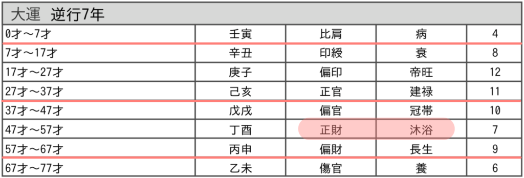 現在の大運は【正財 / 沐浴】。