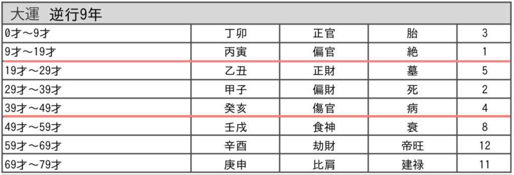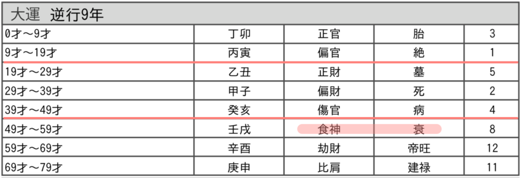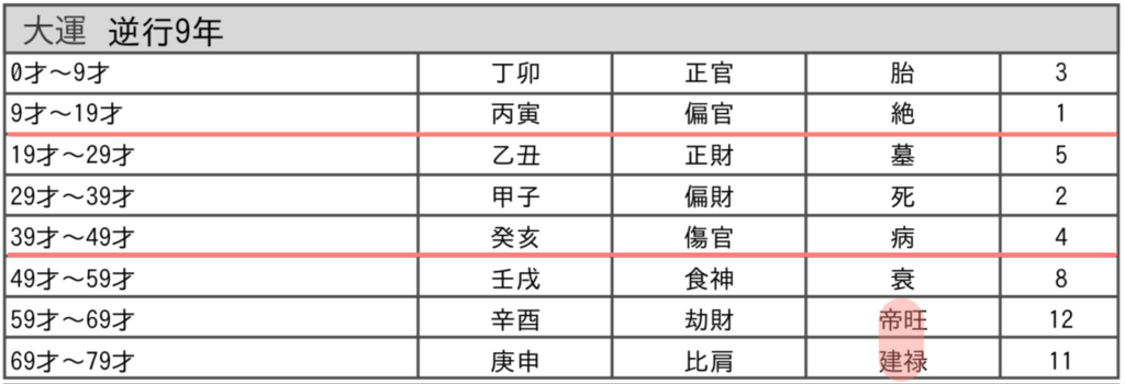 社会運を示す大運(だいうん / たいうん)で見ていきます。