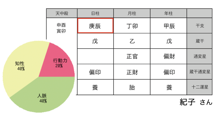 こちらが紀子さんの命式と通変星のパラメーターです。