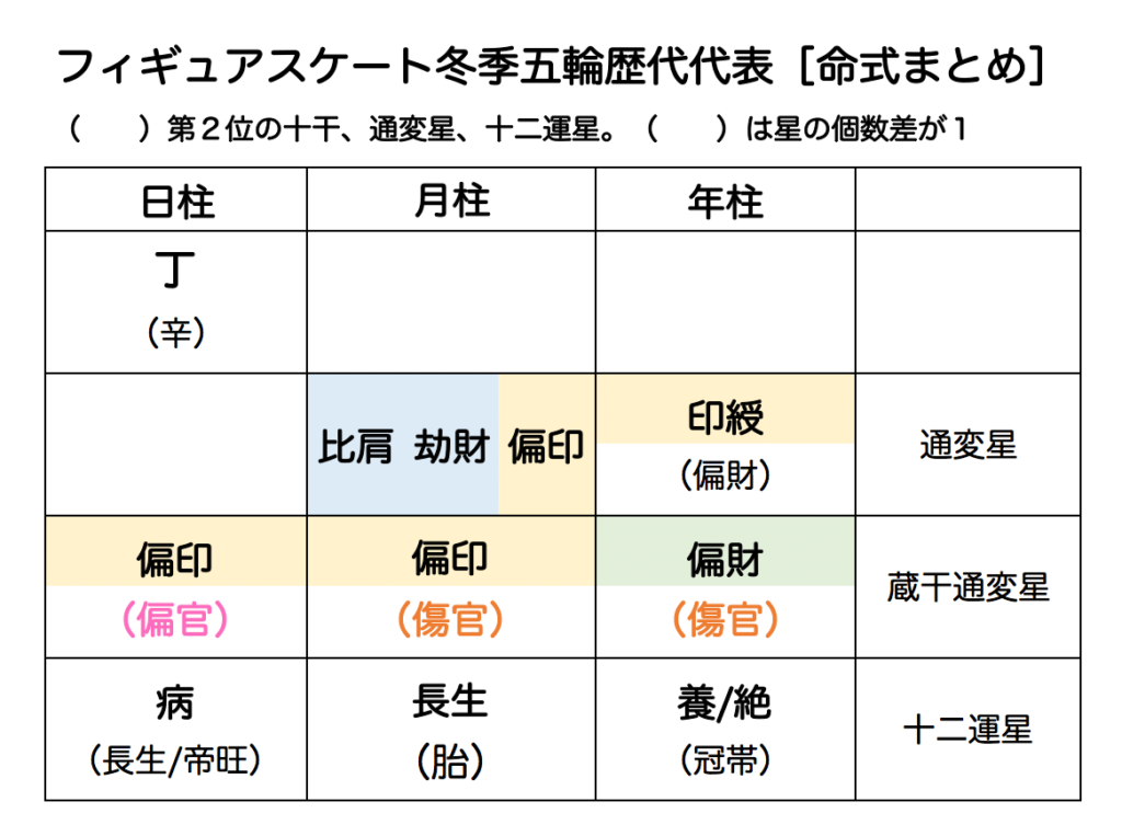命式を出して単純集計することで、フィギュアスケート選手の特長をおおまかにつかむことができました^^