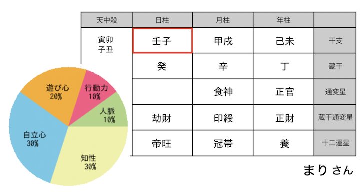 こちらがまりさんの命式と通変星のパラメーターです。
