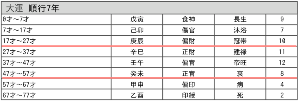 社会運を示す大運(だいうん / たいうん)で見ていきます。