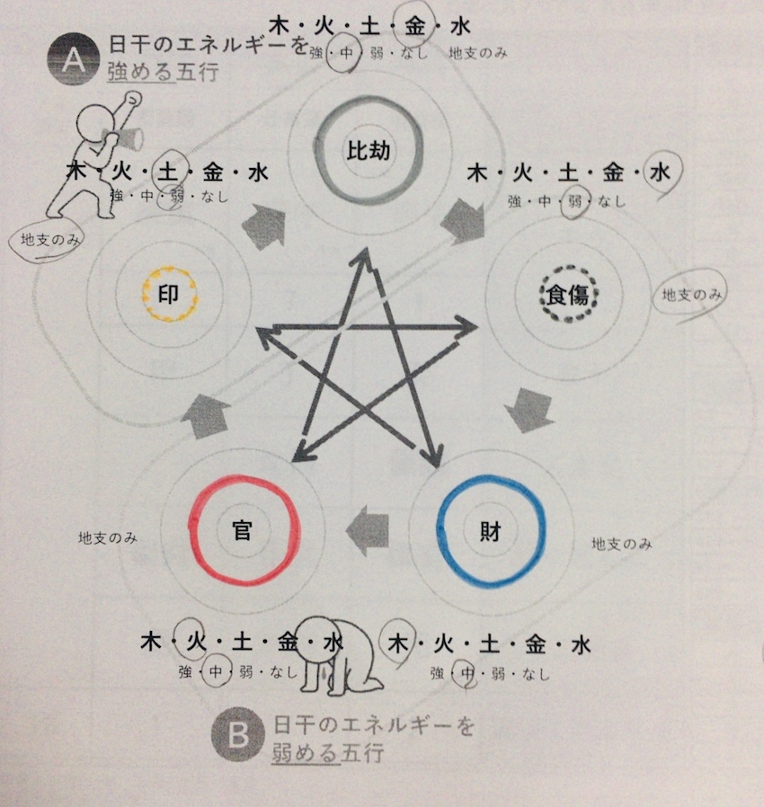 2018年(戊戌)、2019年(己亥)は、上の五行バランスの弱い学びの星【印】と自己表現の星【食傷】が動いた2年でした。